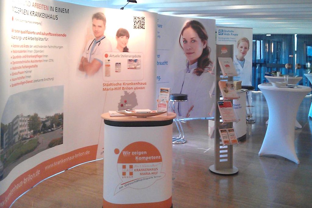 Messestand mit InformationsthekeBeschilderung und FahrzeugbeschriftungBeschilderung und FahrzeugbeschriftungFahrzeugbeschriftungFahrzeugbeschriftungPylone/Übersicht für das GesundheitsCentrum Steinfurt